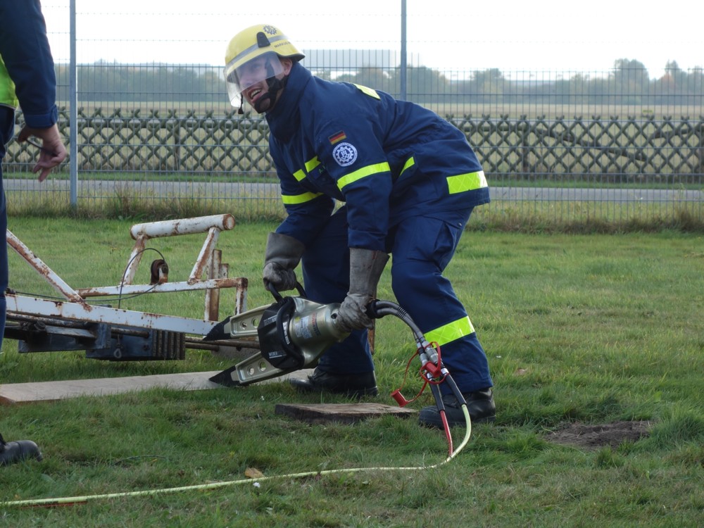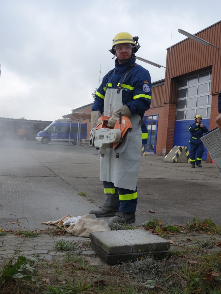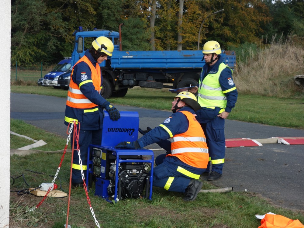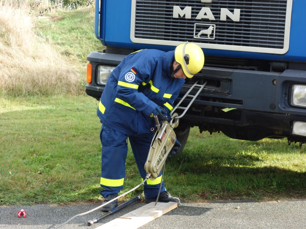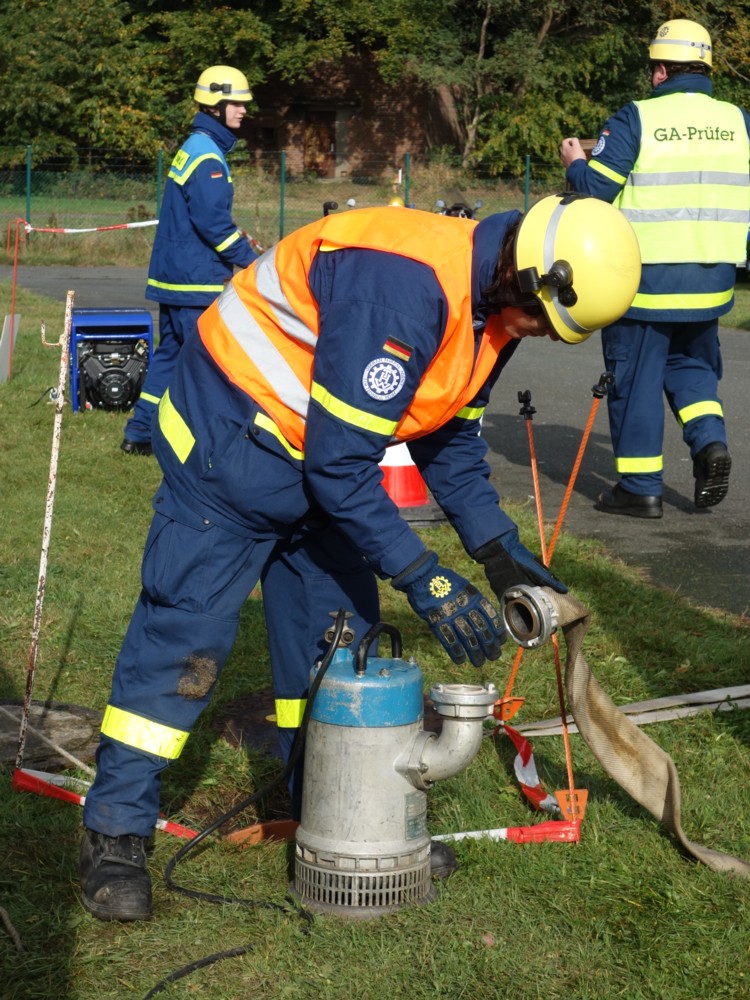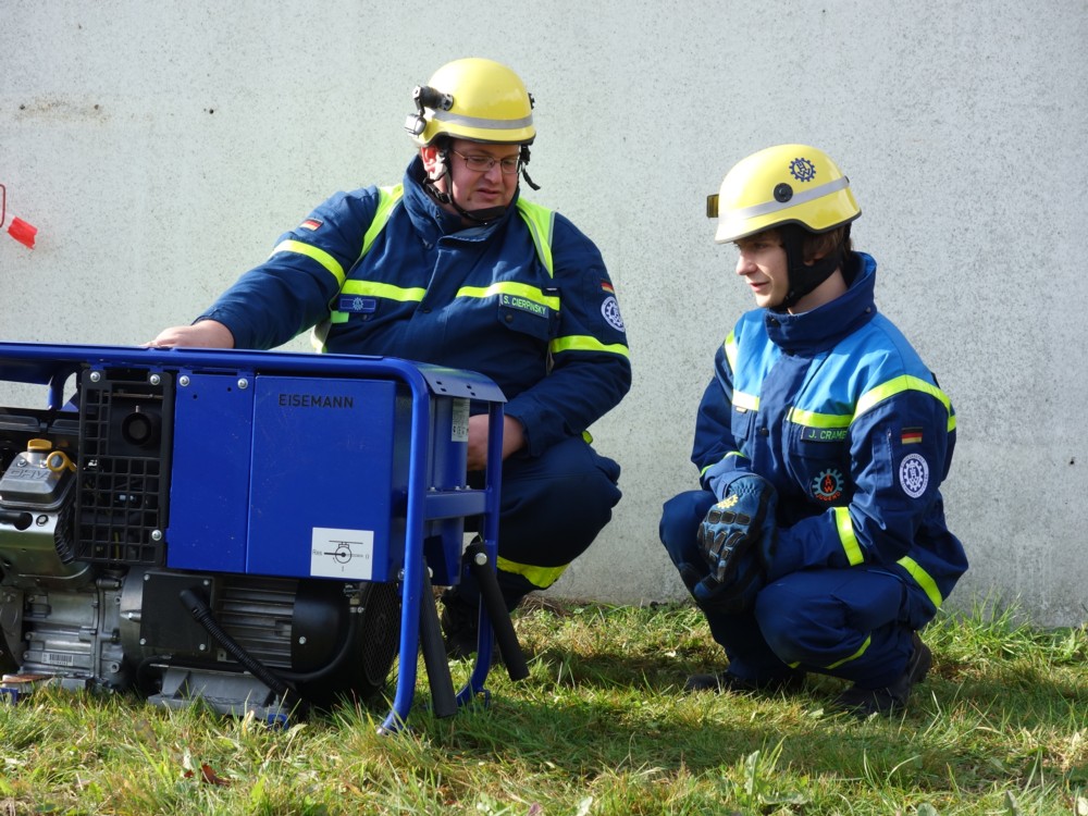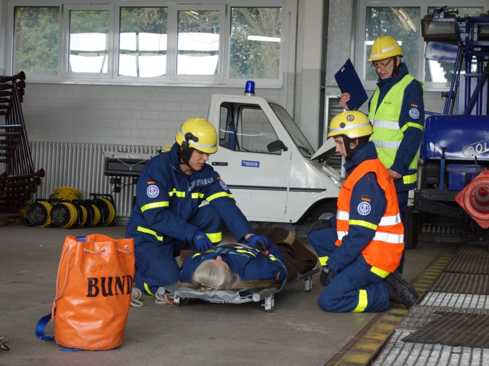 Der Umgang mit Tauchpumpe, Stromerzeuger, Leinen und Trennschleifer wird in der Grundausbildung des THW genauso vermittelt z.B. wie die Eigensicherung im Straßenverkehr, die Handhabung der hydraulischen Rettungsschere und ihres Bruders, des -spreizers, das Einbinden von Verletzten auf einer Trage oder die korrekte Seilinstallation im Greifzug. Außerdem beinhaltet die Ausbildung der angehenden Helferinnen und Helfer auch einen nicht zu knappen Theorieteil. Am Ende der Grundausbildung wird das erworbene Fachwissen mit einer kurzen schriftlichen und umfangreichen praktischen Prüfung abgeklopft.