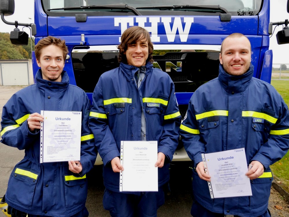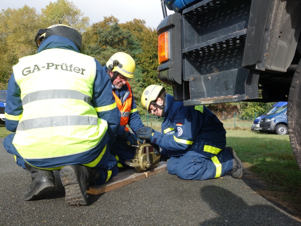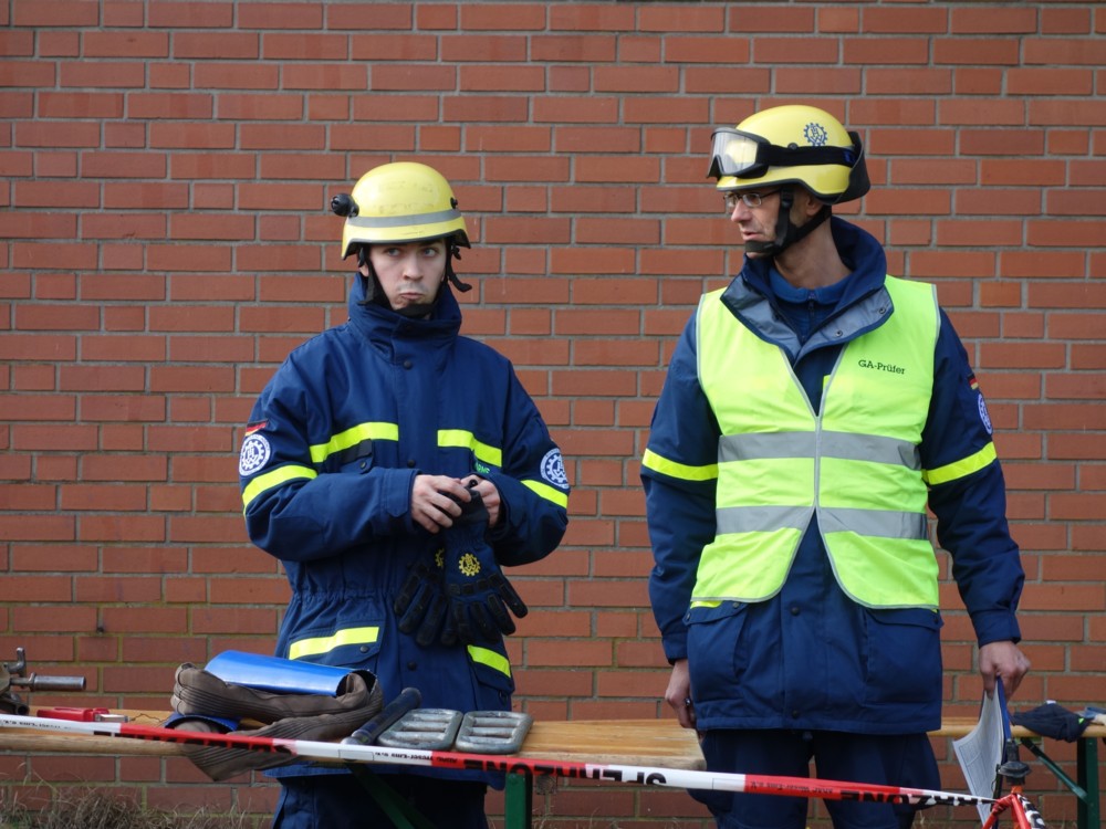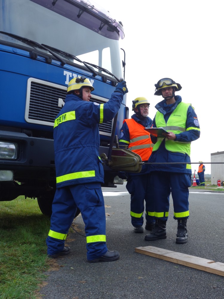 Am Sonnabend war es wieder soweit, 15 Prüflinge aus den Ortsverbänden Buxtehude, Stade, Stelle-Winsen und Lüneburg sammelten sich auf dem Hof des Rotenburger THW und wurden vom Team um Prüfungsleiter Michael Bahr (Lüneburg) auf Herz und Nieren abgeklopft und durch die Mangel gedreht. Außer den drei Helferanwärtern und Prüfungsleiter Bahr reisten noch drei Prüfer sowie drei Stationshelfer unseres Lüneburger Ortsverbandes an die Wümme, um den Prüfungsablauf zu unterstützen. Zu bestnachmittäglicher Kaffe-und-Kuchen-Zeit hielten abschließend elf Prüflinge, darunter unsere drei Hansekleinstädter, die begehrte Prüfungsurkunde erleichtert in der Hand! Sie ist neben dem vorgeschriebenen Impfschutz und der Teilnahme an einem Erste-Hilfe-Lehrgang Voraussetzung für die sogenannte Einsatzbefähigung, also um überhaupt an THW-Einsätzen teilnehmen zu dürfen.