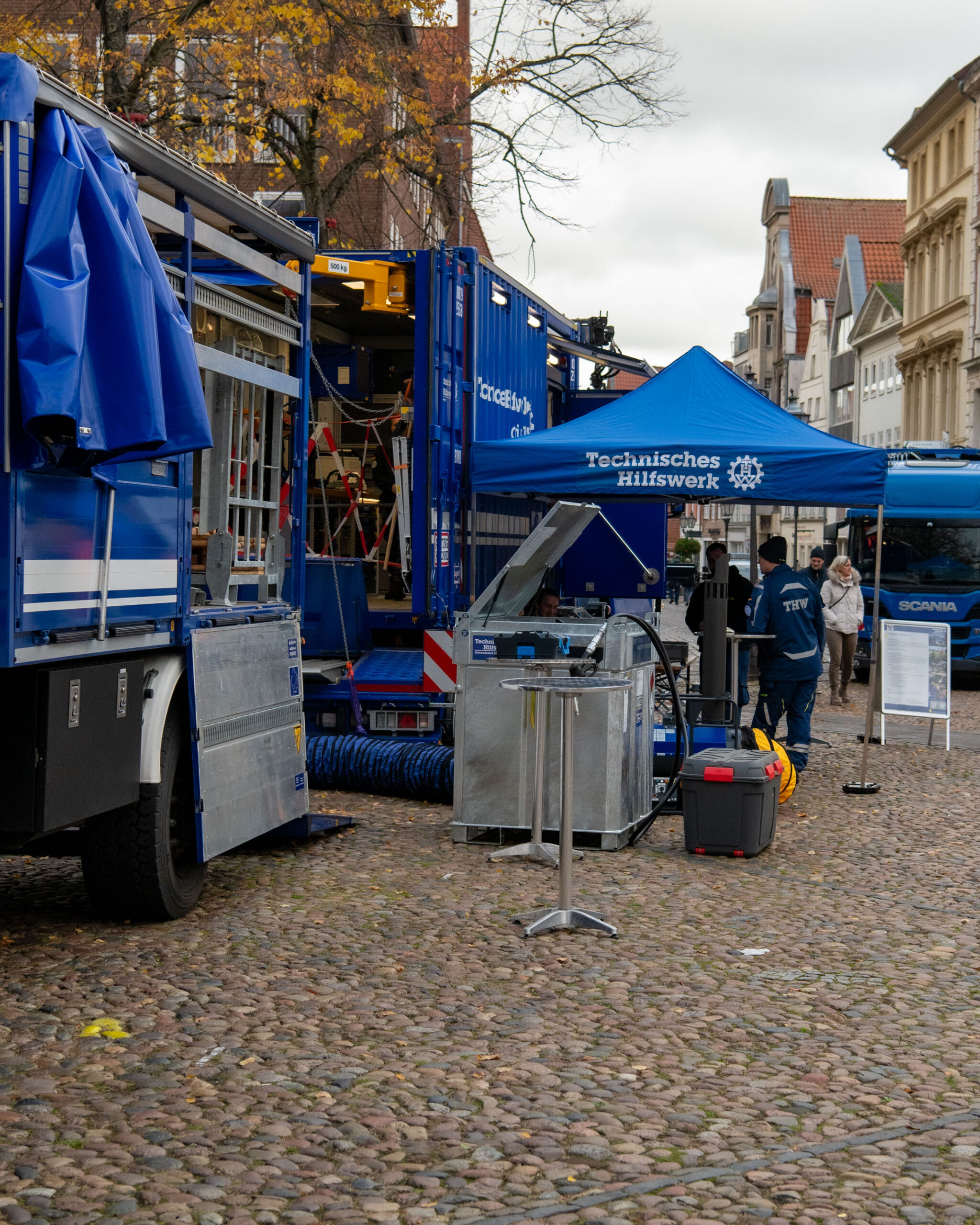 Auf dem Marktplatz und dem Sande präsentierten sich die Blaulichtorganisationen aus Lüneburg, darunter auch das THW.