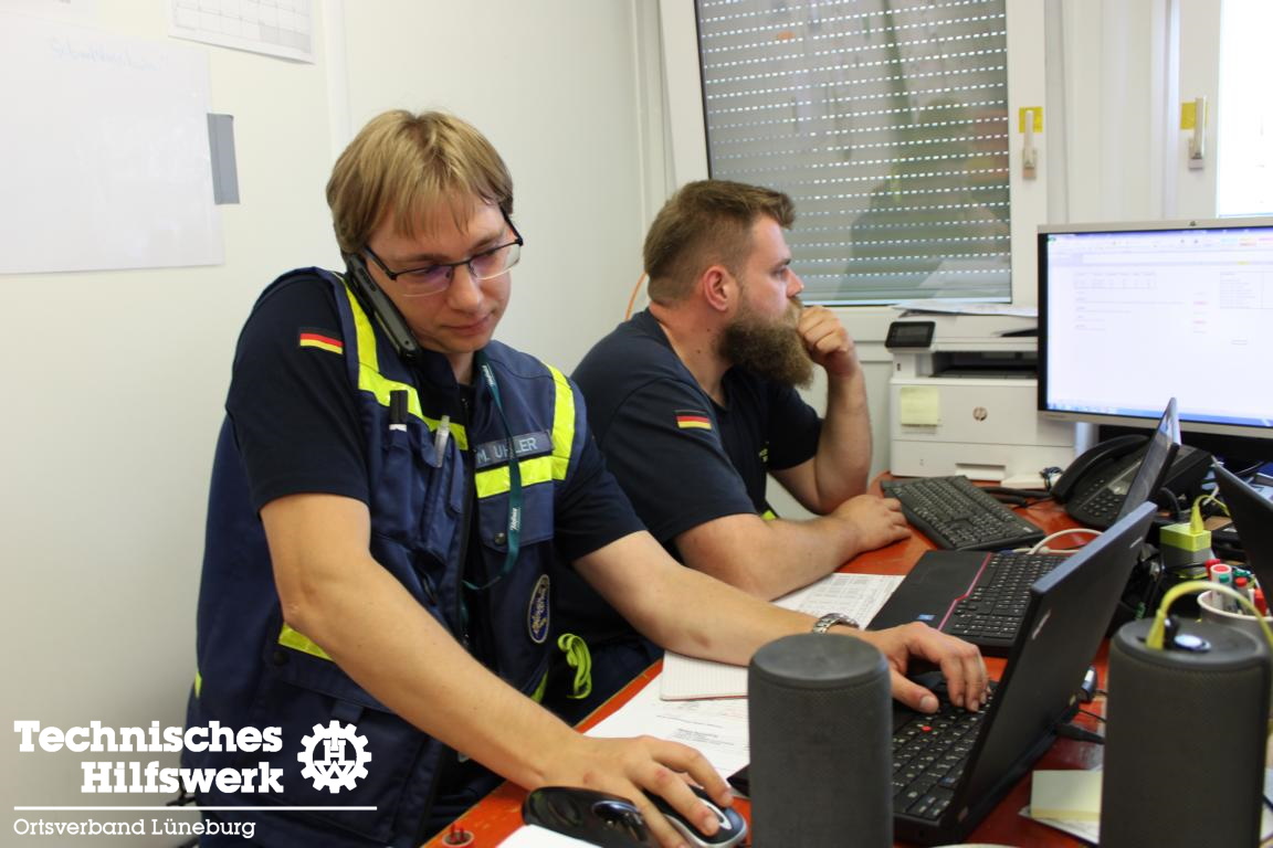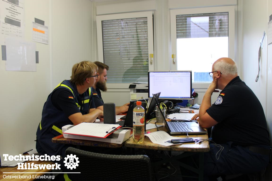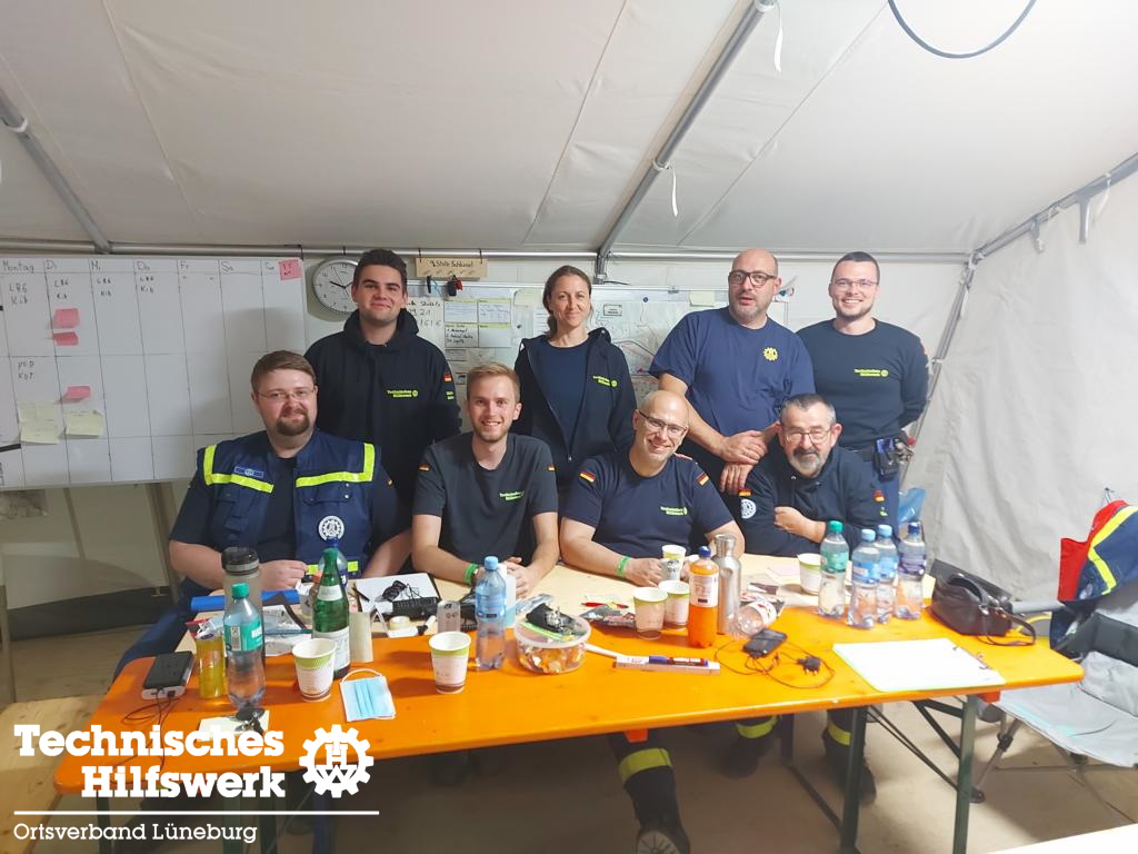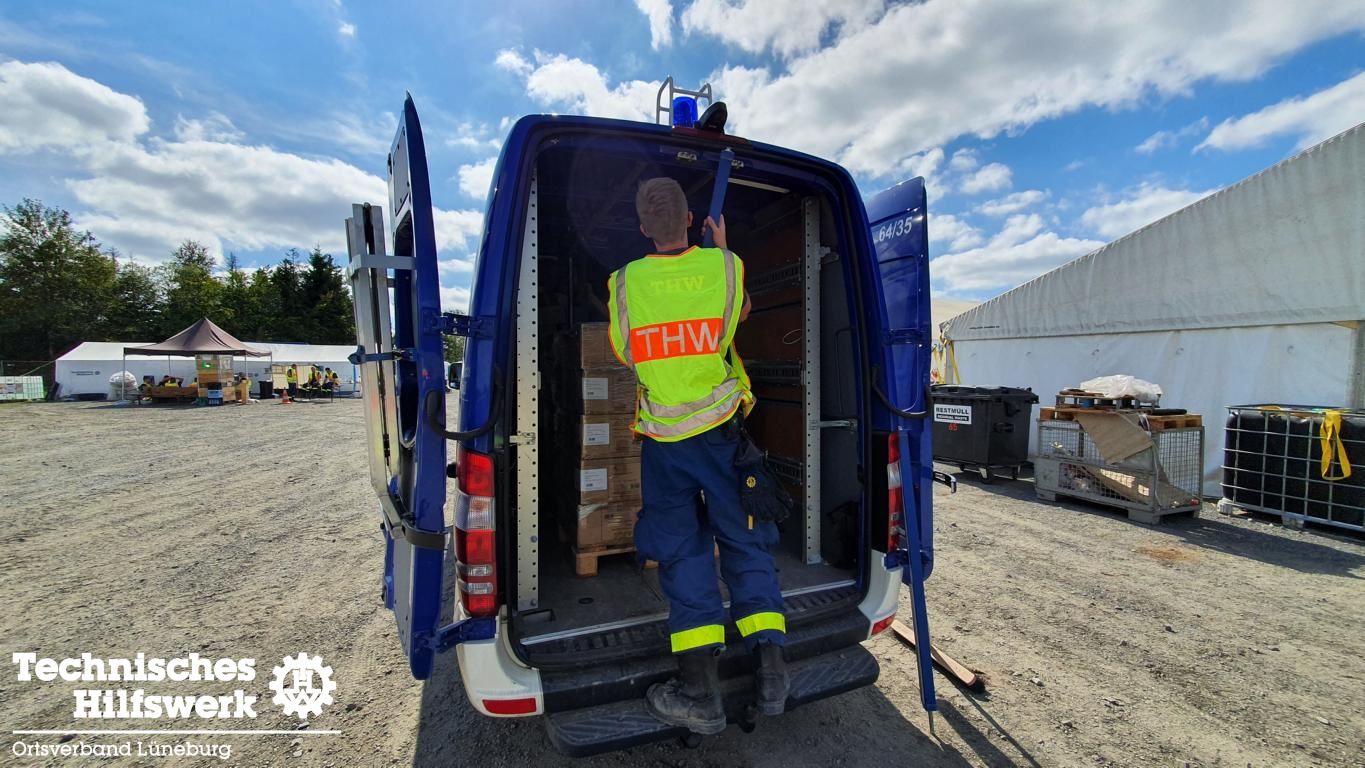 Hauptaufgabe des ersten Einsatzauftrages, welcher von unserem Beauftragten für Öffentlichkeitsarbeit und dem Kraftfahrer der Fachgruppe Ortung wahrgenommen wurde, war der Betrieb und die Koordination des „Shuttle-Service-Teams“ innerhalb und auch außerhalb des Bereitstellungsraumes. Neben unseren beiden Helfern, wurden sie von sieben weiteren Helferinnen und Helfern aus den Ortsverbänden Pfullendorf, Ulm, Husum, Kirchehrenbach, Kutenholz und Berlin-Mitte tatkräftig unterstützt. Es bildete sich schnell ein eingespieltes Team und eine sehr familiäre Stimmung. Nicht ohne Grund bezeichnet man das THW als große, blaue Familie.