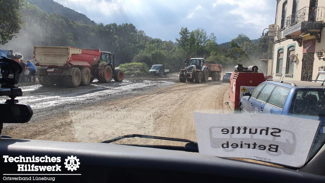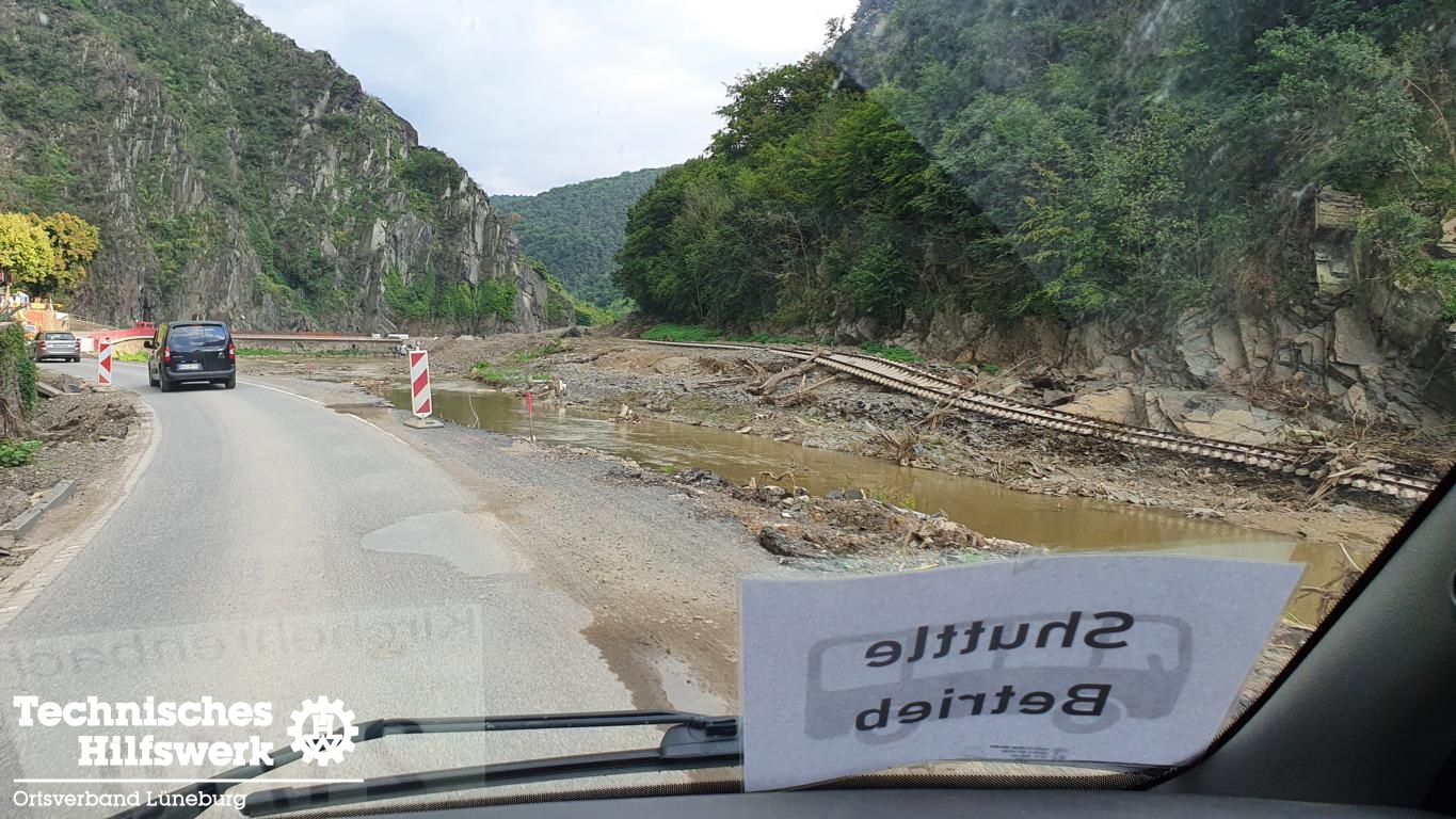 Die hauptsächliche Aufgabe vom „Shuttle-Service“ war das Transportieren von Helferinnen und Helfern des THW mit mehreren Mannschaftstransportwagen (MTW) und Mannschaftslastwagen (MLW V) vom eigentlichen Camp zum Parkplatz ihrer Einsatzfahrzeuge, zum Camp der Logistik Materialwirtschaft, zum Lager der Logistik Verbrauchsgüterversorgung oder direkt ins Schadensgebiet. Sie transportierten außerdem Material und Verpflegung für die Helferinnen und Helfer.