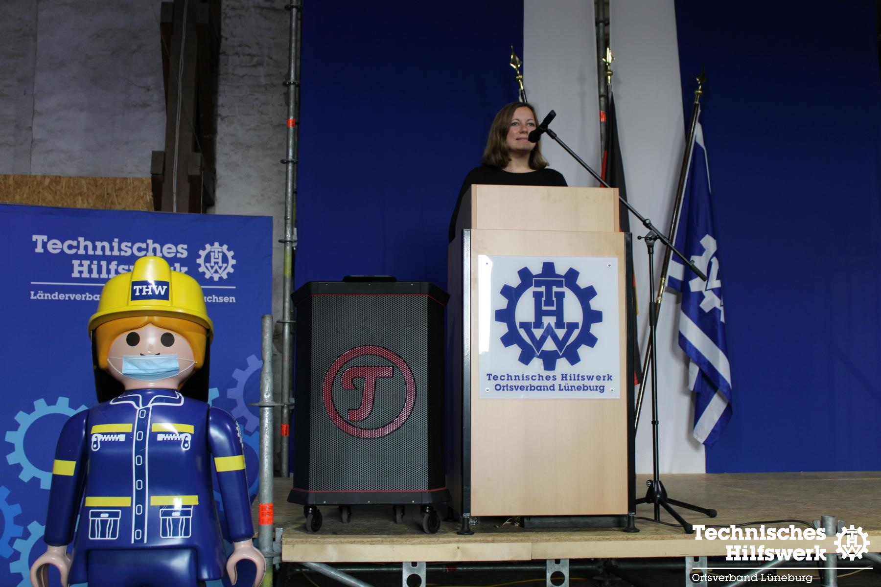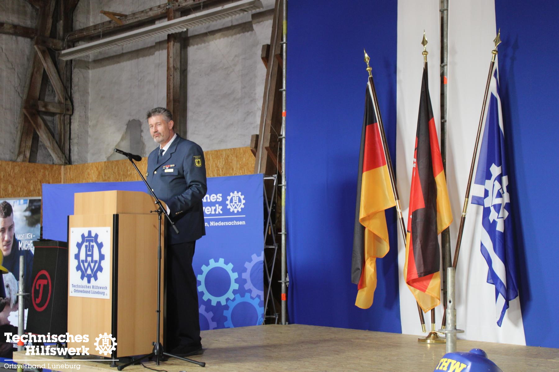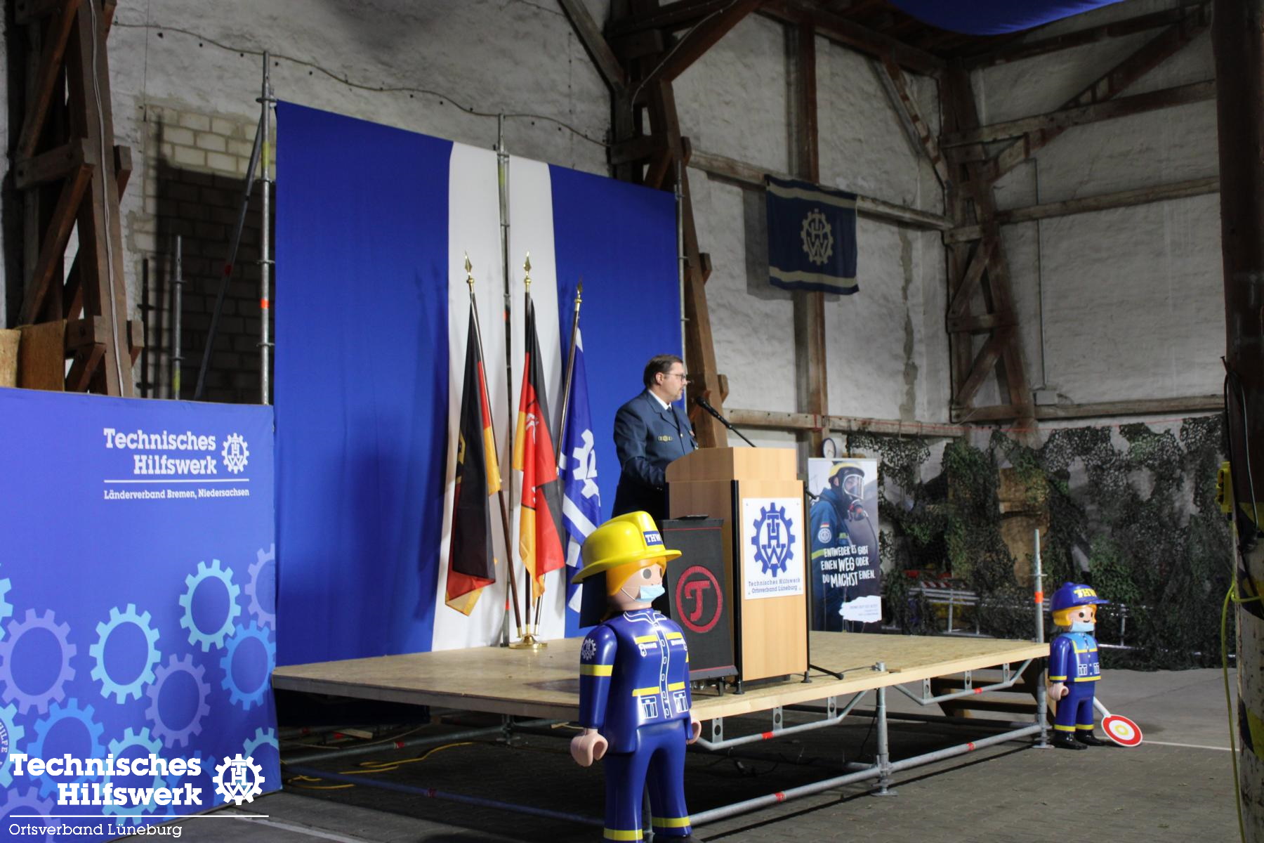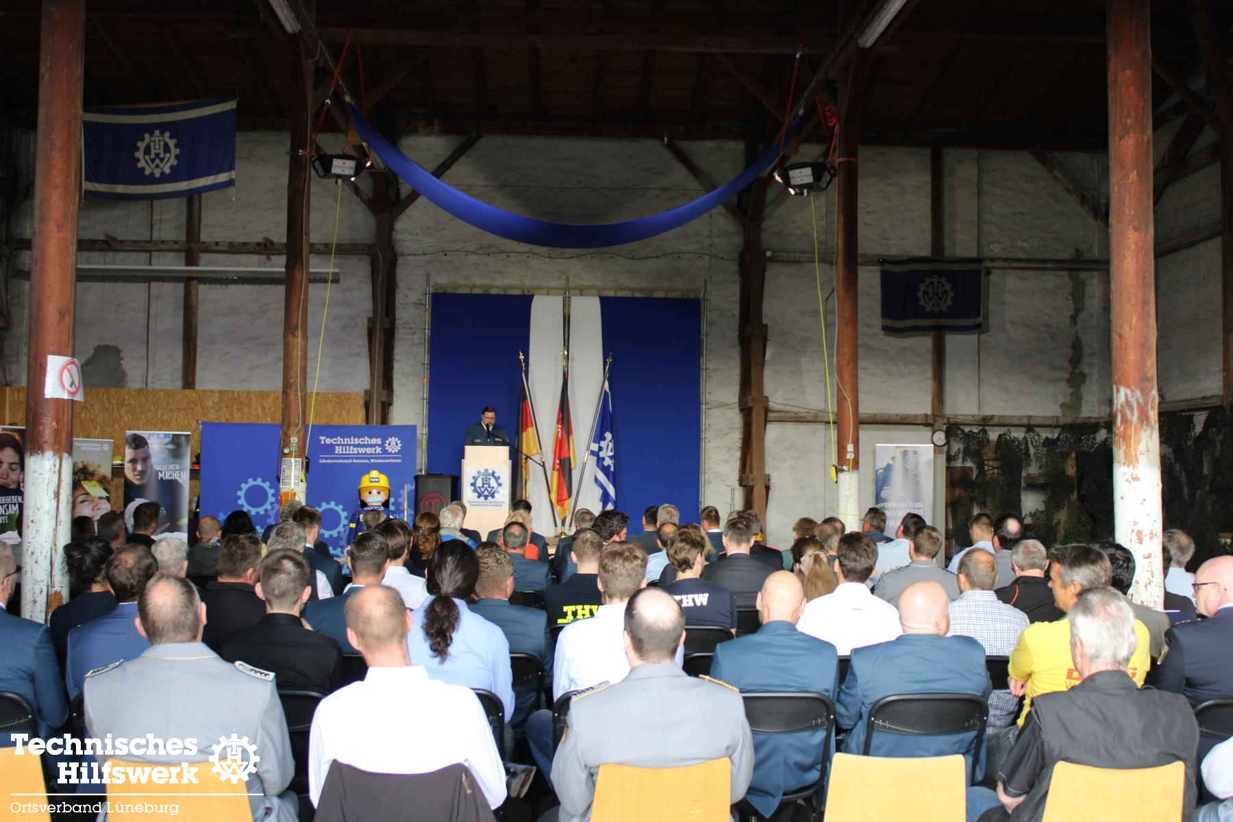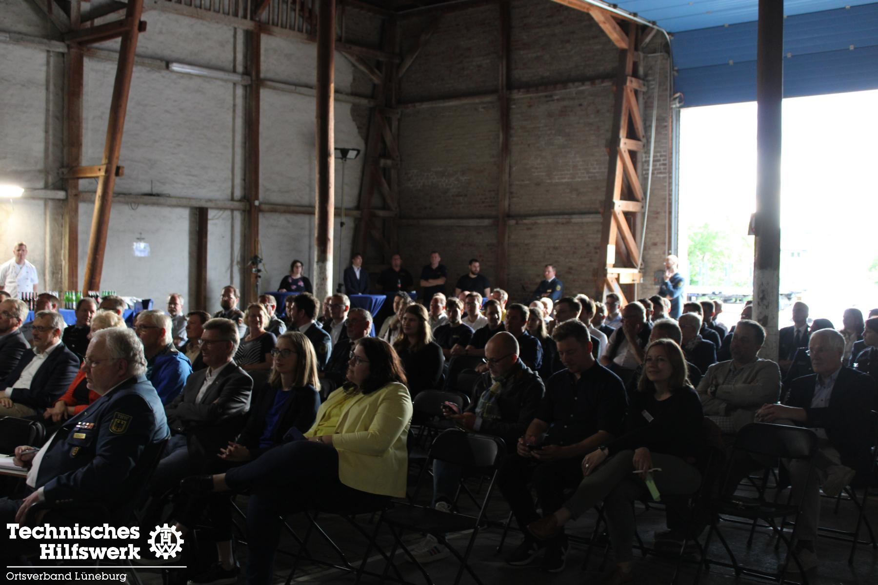 So konnte der Ortsbeauftragte Ingo Perkun am Fr., 10.6. um kurz nach 19.00 Uhr ca. 70 Gäste und 50 THW-Helfer*innen begrüßen, darunter auch Landesverbands-Referatsleiter Nils Grote und Landessprecher Thomas Kolodzi, sowie MdB Dr. Julia Verlinden und Abgeordnete aus Kreistag und Stadtrat. Landrat Jens Böther hielt ein Grußwort ebenso wie Bürgermeisterin Jule Grunau in Vertretung von OB Kalisch. Beide betonten die Wichtigkeit eins guten und zuverlässigen Bevölkerungsschutzes in Krisenzeiten, wie wir sie seit einigen Jahren erleben.