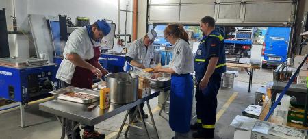 Die Ausstattung ist ausgelegt für die Verpflegung von bis zu 250 Einsatzkräften mit warmen und kalten Speisen und Getränken.