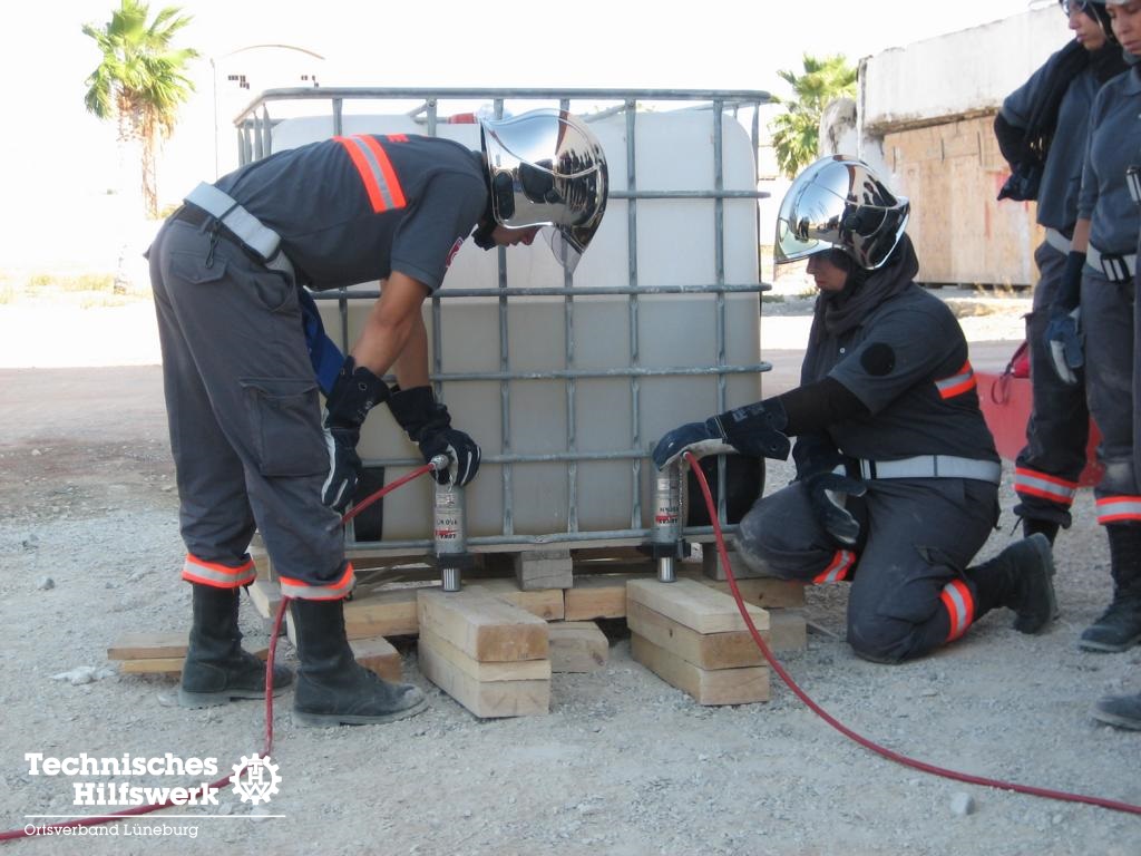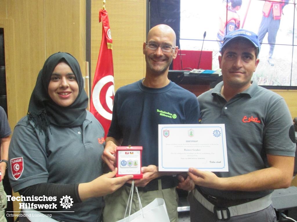 Dabei hat das THW eine wichtige Aufgabe übernommen: in Tunesien soll in Anlehnung an das THW ein Zivilschutzkorps entstehen. Es wurde ein Ausbildungsmodell geschaffen, nach dem jährlich tunesische Ausbilder in deutschen Ortsverbänden in der Grundausbildung unterwiesen werden und danach selbst in der Heimat ehrenamtliche freiwillige HelferInnen ausbilden. Dazu erhält der tunesische Zivilschutz ausgesonderte Fahrzeuge von THW, das dazugehörige Gerät wird neu beschafft.