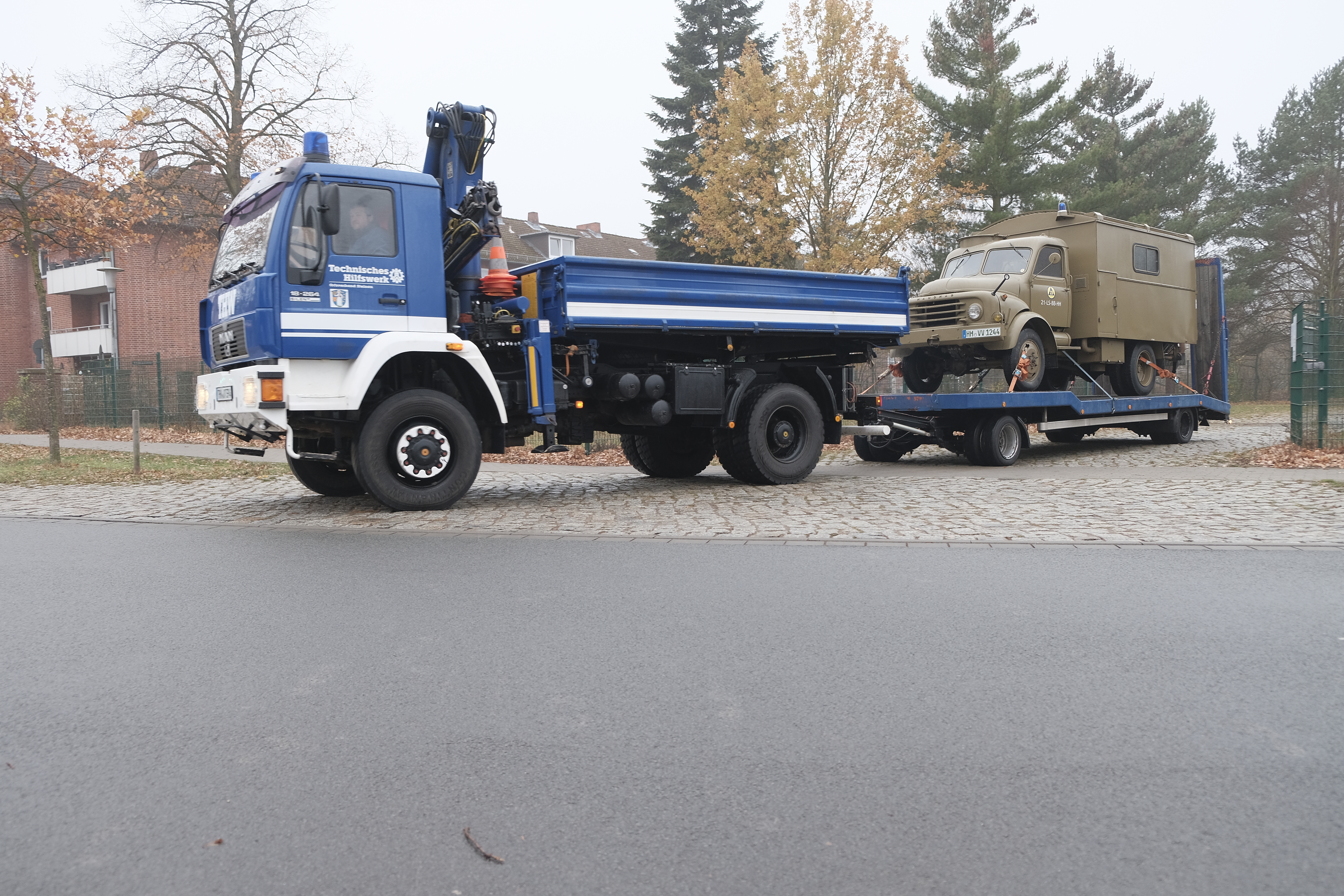 Vor etlichen Jahren restaurierten unsere Lüneburger THW-Kameraden Olaf Braasch und Godeke Klinge einen Mannschaftskraftwagen (MKW) des Luftschutzhilfsdienst von 1962. Vor zehn Jahren traten sie ihn an den THW-Ortsverband Hamburg-Altona als Traditionsfahrzeug ab. In der damals vom Altonaer THW aufgestellten Bergungsbereitschaft (der 21-LS-BB-HH) war der MKW ursprünglich stationiert. Er kehrte somit zu seinen Wurzeln zurück.