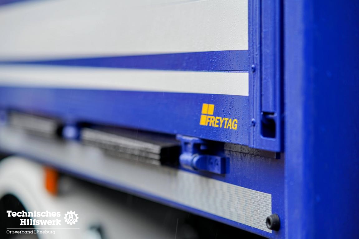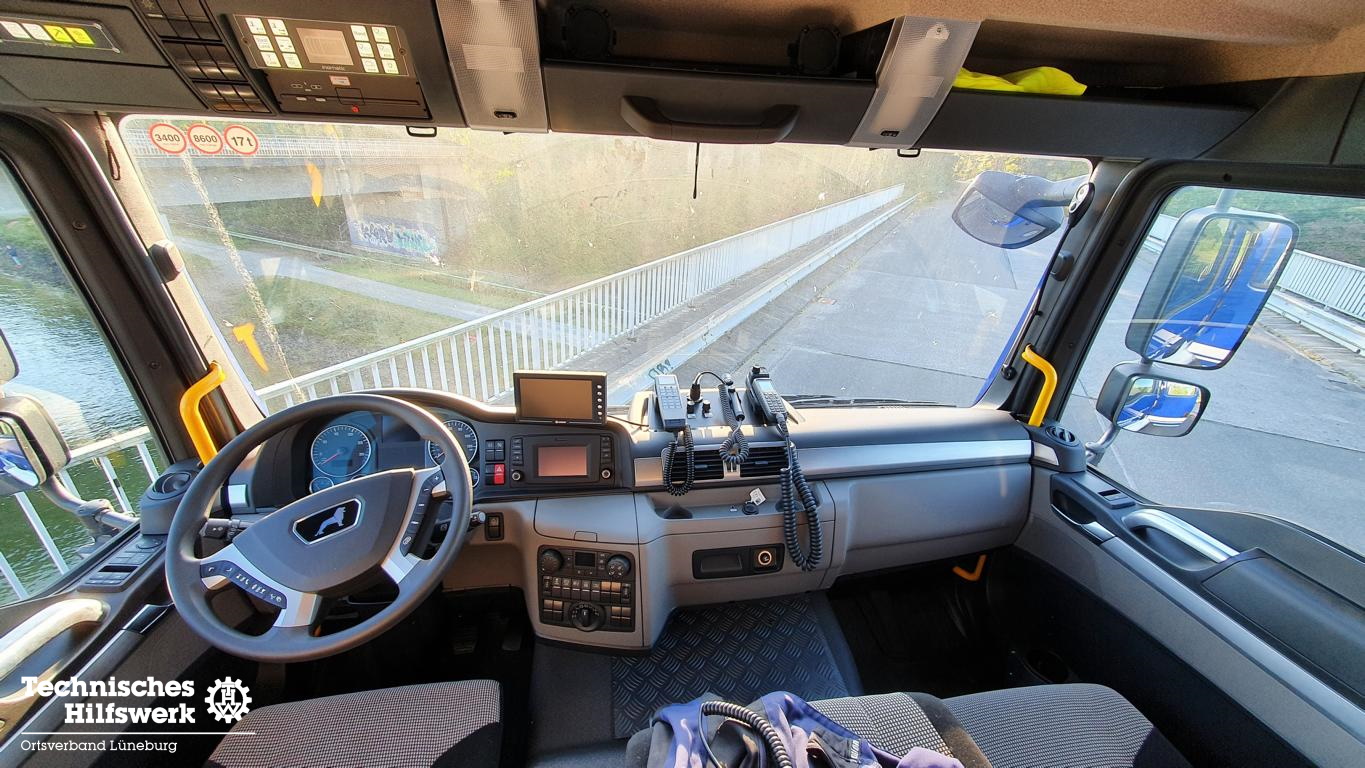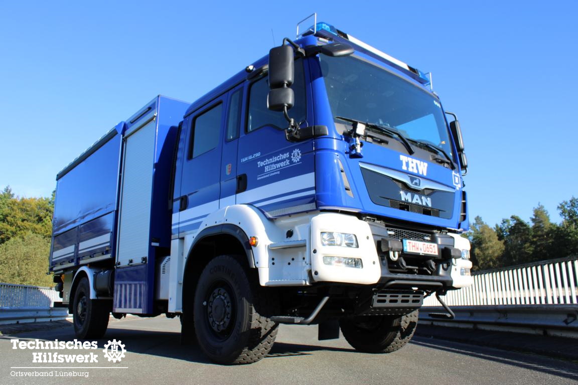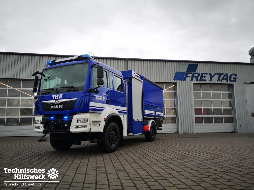 Im Februar 2021 konnten wir einen neuen gebrauchten Mannschaftslastwagen 4 (MLW 4) aus dem Ortsverband Buxtehude übernehmen. Nachdem der Ortsverband einen neuen LKW Ladebordwand für die neue dislozierte Fachgruppe Elektroversorgung erhielt, wird der MLW 4 ab sofort in der Fachgruppe Logistik Materialwirtschaft als Transport- und Zugfahrzeug eingesetzt. Das neue Einsatzfahrzeug wurde auf Basis eines MAN TGM 13.250 4×4 BB Fahrgestells mit Gruppenkabine von der Firma Freytag aus Elze im Jahr 2016 gebaut, in dem bis zu sieben Helferinnen und Helfer zu Einsätzen transportiert werden können. Angetrieben von einem 250 PS (184 kW) starken Dieselmotor mit einem vollautomatisierten 12-Gang-Schaltgetriebe, erfüllt er die neueste Abgasnorm EURO 6. Dank permanentem Allradantrieb und diversen Antriebssperren meistert das Fahrzeuge auch Fahrten in unwegsamem Gelände sowie Wasser-Durchfahrten bis zu einer maximalen Tiefe von 600 mm. TETRA-Digitalfunk sowie 4 m Funk, Standheizung, Rückfahrkamera, LED-Blaulichtbalken sowie LED-Heck- und Frontblitzer, LED-Arbeitsscheinwerfer und ein Tempomat runden das Gesamtpaket ab.