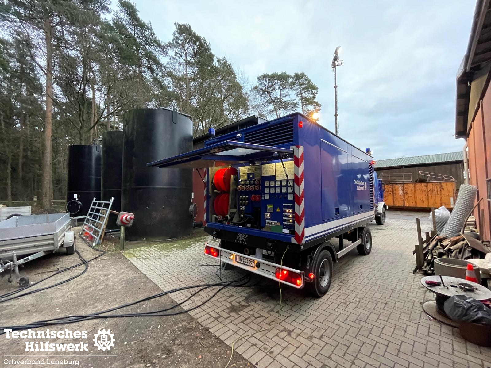 THW-Helferinnen und Helfer aus dem Landkreis Lüneburg unterstützen seit dem 27.12 die bereits eingesetzten Einsatzkräfte von THW, Feuerwehr oder anderen Hilfsorganisationen im Kampf gegen das Hochwasser. Durch die Flutung einiger Trafostationen musste für den gesamten Park der Stromabgestellt werden. Mit der 200 kVA-Netzersatzanlage der Lüneburger Fachgruppe wurde die Trinkwasserversorgung, das Licht und die Heizung im Lodge- und Verwaltungsbereich wieder in Betrieb genommen. Eine zweite Fachgruppe E betreibt die Heizungsanlage im Elefantenhaus.