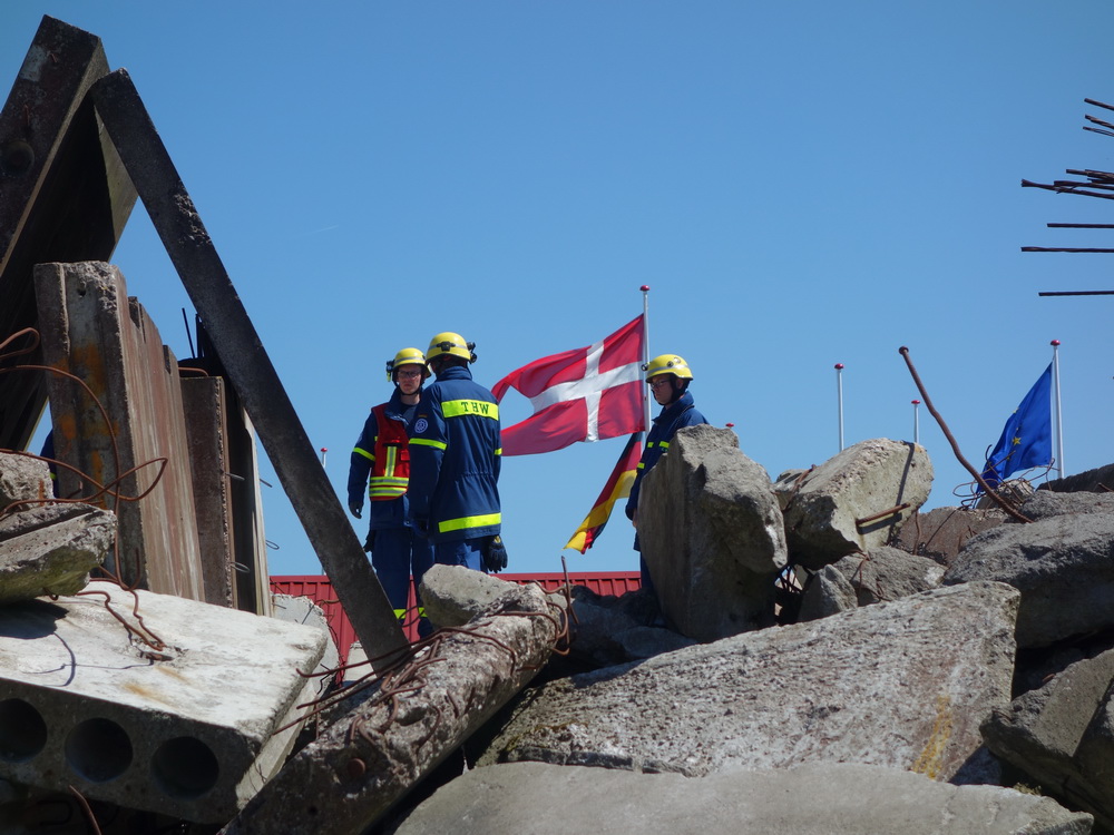 Atem-anhaltendes Dänemark: Aufgrund der großflächigen Zerstörungen wurde internationale Hilfe durch das Technische Hilfswerk angefordert, rund 160 Ehrenamtliche aus fünf Landesverbänden finden sich im Flensburger Bereitstellungsraum ein. Es handelt sich um Ortungsspezialisten und Bergungsgruppen sowie Zugtrupps zur Einsatzkoordinierung.