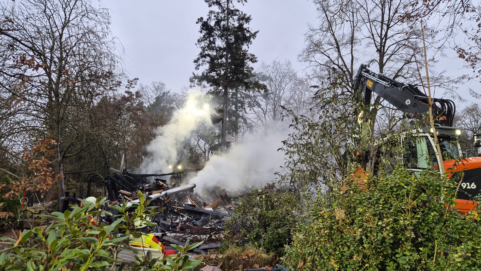 Am Freitag morgen wurde unser Baufachberater durch den einsatzleitenden Gemeindebrandmeister der EG Adendorf an eine Einsatzstelle in Adendorf beordert. Seit den frühen Morgenstunden standen dort ein Wohnhaus sowie ein angrenzendes Nebengebäude im Vollbrand. In Folge des Brandes ist bedauerlicherweise auch ein Todesopfer zu beklagen. Für das THW bestand die Aufgabe darin, eine Aussage zu möglichen Schadstoffbelastungen zu machen. Aufgrund des Baujahres und der typischen Bauweise eines sog. ‚Fertighauses‘ der 1960er Jahre wurde die Einschätzung getroffen, dass mit hoher Wahrscheinlichkeit eine Schadstoffbelastung anzunehmen sei und so die Reste als Sondermüll behandelt werden müssen.